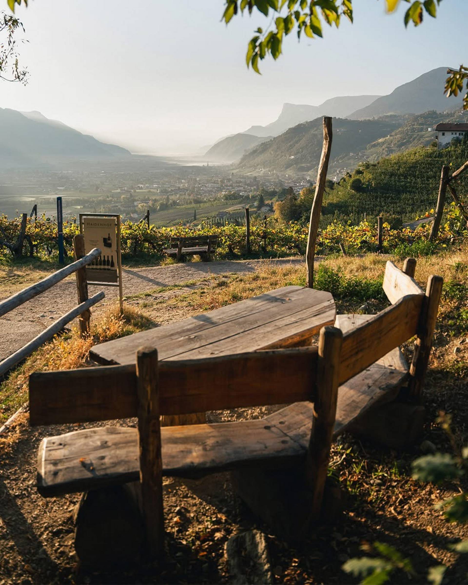 Vom Dorfplatz in Marling fährst du durch die Weinberge Richtung Marling Berg. Folge der Beschilderung zum Höhenweg. Auf Schotterwegen und Waldpfaden erreichst du den Höhenweg und kannst anschließend wieder über den Marlinger Waalweg zu uns zurückkehren.